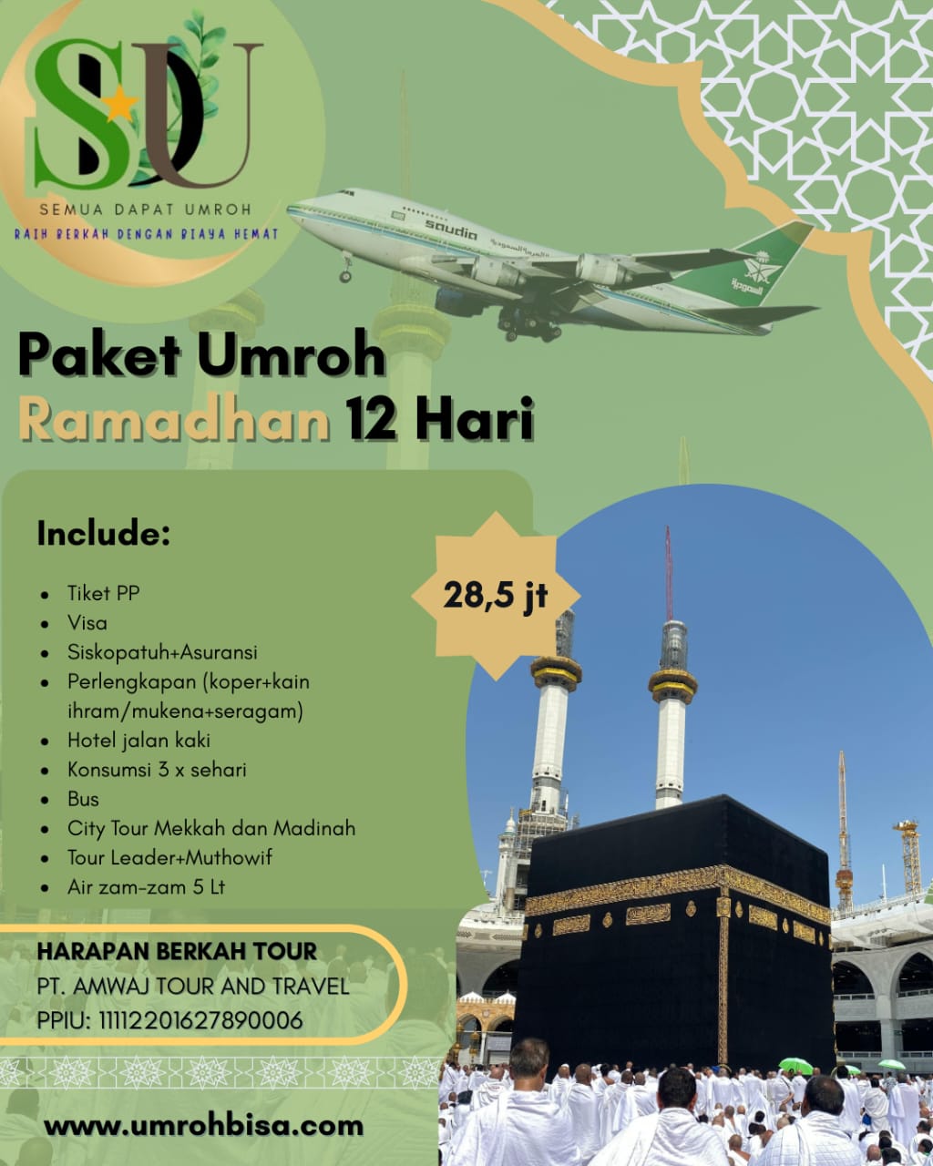 PAKET TERMASUK Tiket Pesawat PP Visa Umroh Siskopatuh + Asuransi Hotel Mekkah & Madinah Makan 3x sehari Tour Leader + Muthawif Manasik Ziarah Mekkah & Madinah Transortasi Bis Full AC Perlengkapan Umroh Air Zam-zam 5 lt PAKET TIDAK TERMASUK Paspor Vaksin Tiket Domestik Pengeluaran pribadi